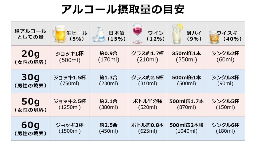 肝脂肪の蓄積に加えて1つ以上の心血管代謝リスク因子を持ち、なおかつ中等度(男性30g~60g/日、女性20 g~50g/日)の飲酒習慣がある場合は「MetALD(メットエーエルディー)」と診断されます。これは、MASLDの主な要因である「代謝機能障害」に「アルコール摂取」という2つ目の要因が重なった状態。簡単に言うと、二重に負荷がかかっている病型です。